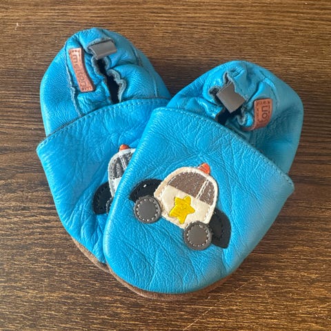 Selger pent brukte Melton tøfler i blå farge, str 12-18 år.