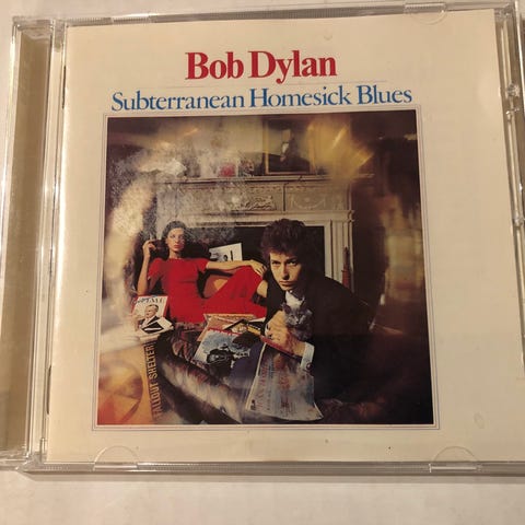 Bob Dylan Love And Theft CD med 12 spor. Inkluderer låter som "Tweedle Dee & Tweedle Dum", "Mississippi", "Love And Theft" og "Sugar Baby". Utgitt under Columbia Records. CD-en leveres i standard jewel case med cover og bakside.