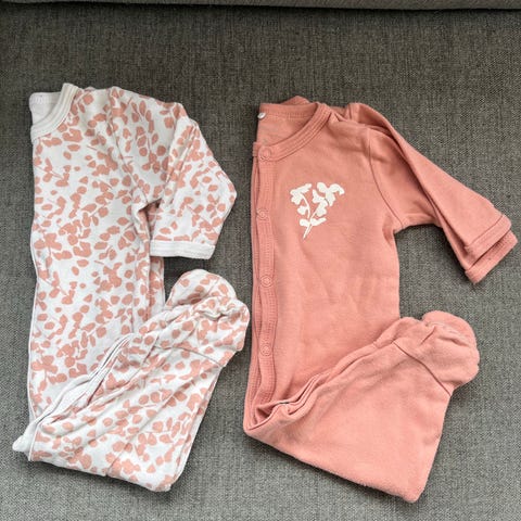 Rosa med hjerter og anti-skli med føtter str 80 fra h&m