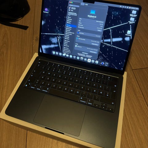 Selger en MacBook Air 13- (2024-modell) med Apple M3-chip, 8 GB RAM og 256 GB lagring. Maskinen er svært rask, stillegående og passer perfekt til både studier, jobb og kreativt arbeid.