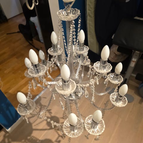 Selger hånd skjært. lysekrone og to vegg lampetter.