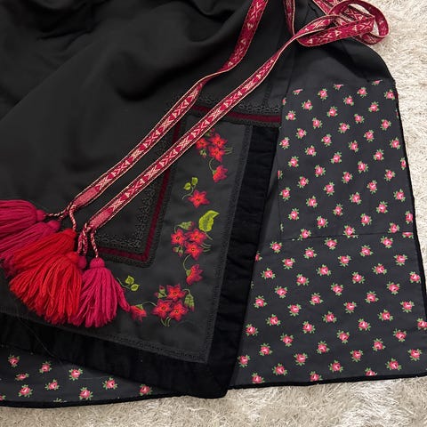 Brodert forkle og broderi rygg og bryst/vest.