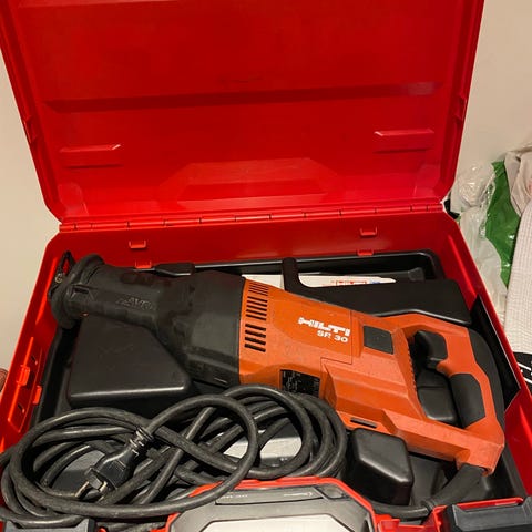 Bajonett sag fra Hilti. Følger med ett 36volt 3ah batteri. Og lager. God sag.