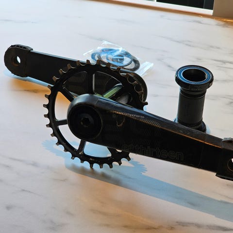 Et utrolig lett og sterkt kvalitetskranksett fra ethirteen i karbon inkl. kranklager og to drev.