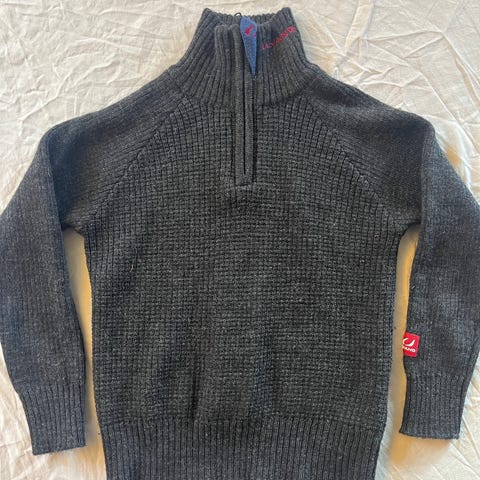 Ingen hull. Malingsflekk bak på ene armen. Har og gensere i 8 år, kan selges samlet med red i pris