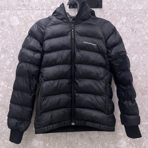 Selger Peak Performance Frost Jr. dunjakke i str 150. Jakken er veldig lite og pent brukt (6-7 ganger), men har uheldigvis fått noen små rifter nederst på baksiden av jakken, disse er reparert med reparasjonslapper fra "laglappen.no". Se eget bilde. Jakken er mørkeblå (blue shadow). Selges p.g.a lite bruk.