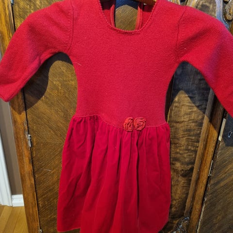 Denne stakken er ordentlig kvalitet, 50 % ullblanding og underskjørt så stakken ikke klør. Skjorte i str 140 (passer fint 128) følger med (men her mangler en mansjettknapp) pent brukt, noe slitasje nederst på kanten, men syns knapt.