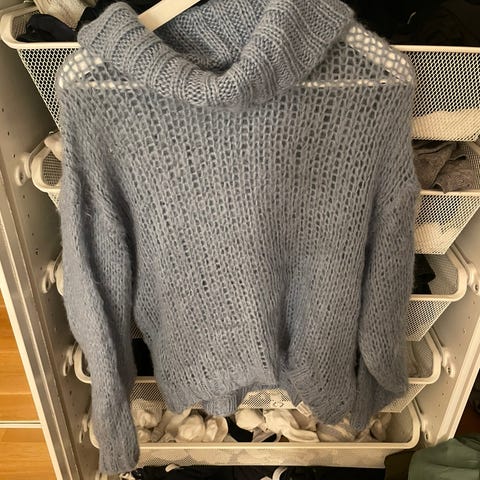 Genseren har V-hals og lang erm, laget laget av myk angora