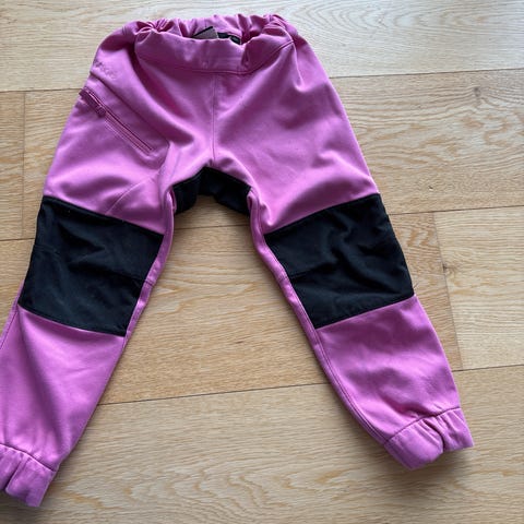 Didriksons softshellsbukse Lövet selges. Str 100. Buksen har forsterkede partier på knær og baksiden, elastisk midje med justering og refleksdetaljer. Materialet er slitesterkt og egnet for utendørs bruk. Vind- og vannavstøtende..
