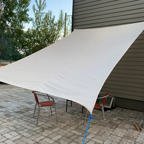 Perfekt som solseil i hagen eller på hytta. Har fester i alle 3 hjørner.