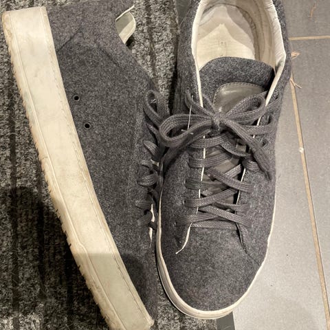 Low Top fra det portugisiske merket Filling Pieces (FP). Kjøpt i kjøben for noen år siden. Veldig lite brukt. Helt sorte. Skinn. Semsket skinn i hel slik at de ikke «glipper». Er pusset med god kvalitet skokrem og lagret i skoboks.