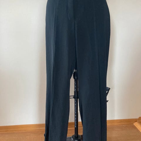 Brune dressbukser fra Gerry Weber, str. 42. Liten splitt på utsiden nede i falden. Linning med beltestropper og strikk bak på sidene i linningen. Sidelommer. Midje 80 cm., lengde 104 cm