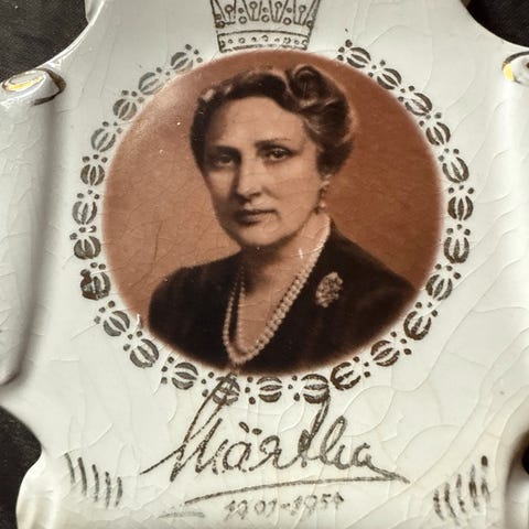 Feilfri plakett med portrett av Kronprinsesse Märtha, produsert av Figgjo Flint.