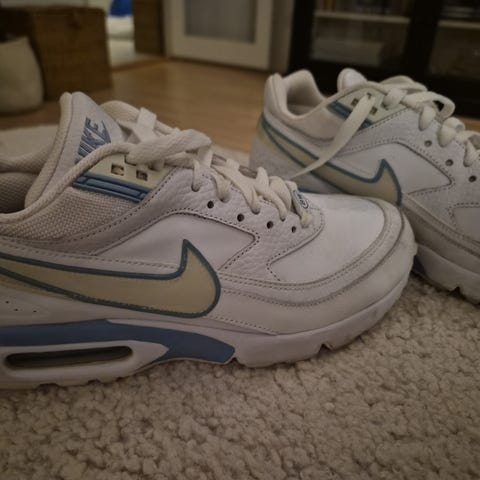 Nike Air Max i modellen Thea i brunt beige-skinn og hvit såle. Noen bruksmerker i såle og på sko (se bilder) men skinnet i god stand. Størrelse 37,5, men passer en 37.