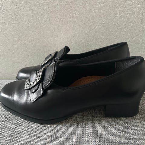 Pent brukte bunadsko nr. 39. Produsent: Klaveness. Har vært nedpakket i original eske. Sist brukt noen år før pandemien.