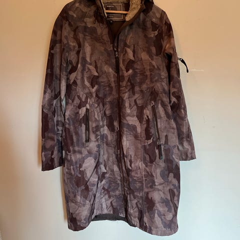 Lang flott grå regnfrakk fra Ilse Jacobsen. Størrelse 38.