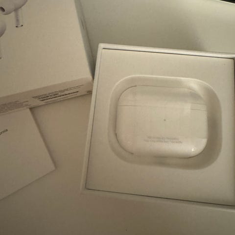 Apple AirPods Pro trådløse ørepropper i hvit farge. Produktet leveres i original emballasje og inkluderer støydempingsteknologi, tilpasset passform med silikonplugger, og er kompatibelt med Apple-enheter.
