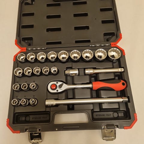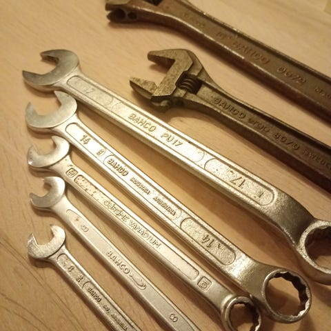 Fastnøkler, skraller, piper, tenger og skrutrekkere