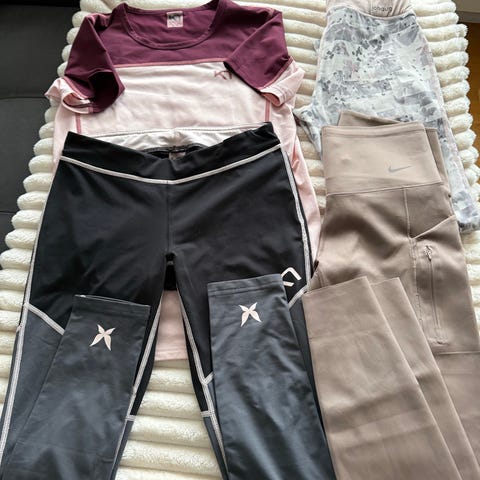 4 stk. treningstopper og 2 stk. treningsbh, str. 38/M.