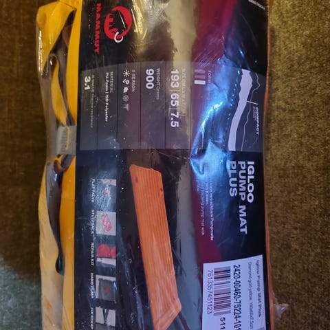 Strøken sovepose fra Mammut knott mti, 115cm og oppblåsbart liggeunderlag fra Urberg, 120cm