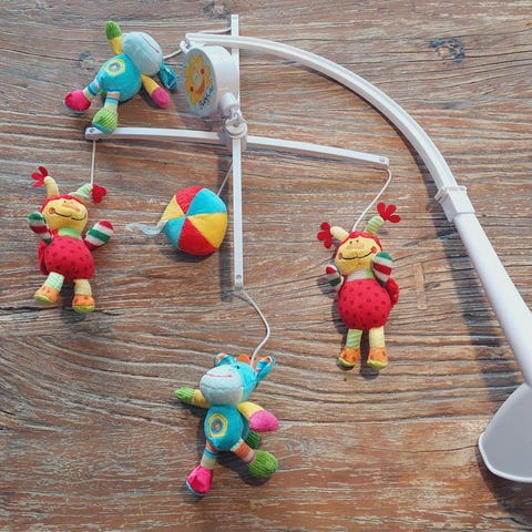 Selger en fin musikkuro til babyseng. Fungerer utmerket. Har musikk som kan stilles på bestemt tid (10 min, f.eks.) Flere forskjellige rolige sanger.