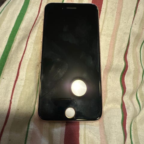 Litt knust i skjermen fremme, men ellers fin. 32GB og 80% batterikapasitet. Sender den i den originale esken.