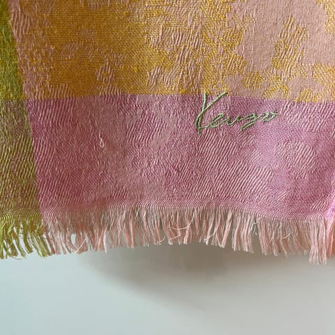 Vintage Kenzo skjerf i svart farge, laget av 100 % ull. Skjerfet har broderte blomsterdetaljer i flere farger og frynser. Størrelse one size.Det er 2 m langt.