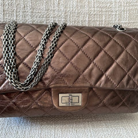 Modellen er Reissue 226 i klassisk kalveskinn med gullfarget hardware (GHW). Vesken ble kjøpt fra Chanel i 2017 og er sjelden brukt, uten skader eller riper, og fremstår som ny, fortsatt med plast på innsiden av låsen. ✨Vurderer å selge da jeg også har en classic flap i samme farge☺️