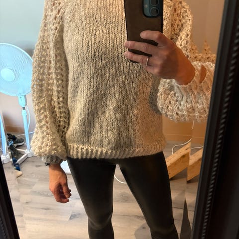 Strikket i superwash fra trysil garn. Gråmelert farge.