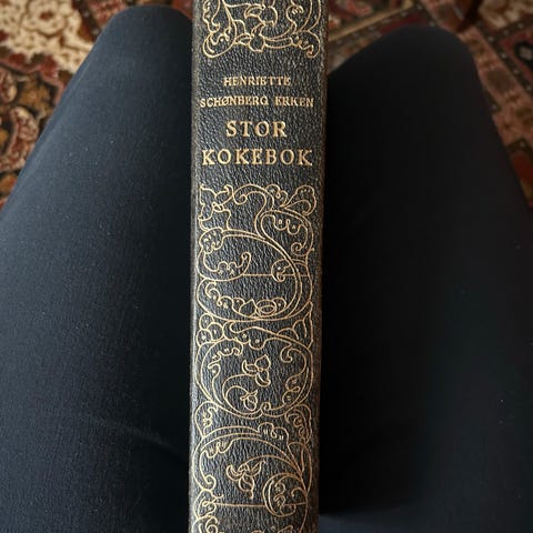Henriette Schønberg Erken ‘Stor Kokebok’.1943. I god stand.Et ‘must’ for enhver ‘kjøkkenskriver’. Kr.400. Tar Vipps og sender Norgespakke(kr.73). Kjøper betaler frakt.