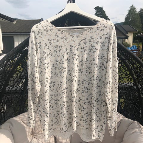 Pen brukt genser brukt 1 gang . Noe gjennomsiktig. Kul til olabukse, sort bukse. Bryst bredde 70 cm, 73 cm lang. Materiale 50% viskose, 50% bomull.