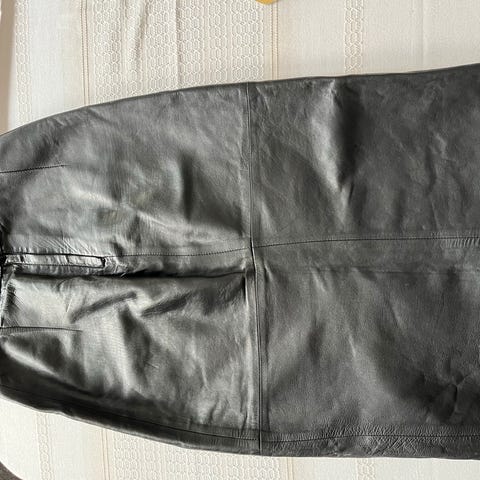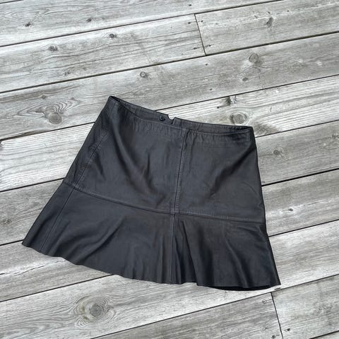 Nydelig kort skjørt i lammeskinn med fin bølgekant nederst. Foret. Som ny.