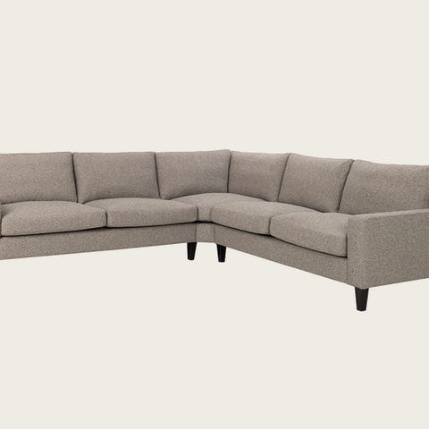 Oppsett 3-hjørneavslutning høyre. Tekstil Born beige, hvitoljet runde ben.