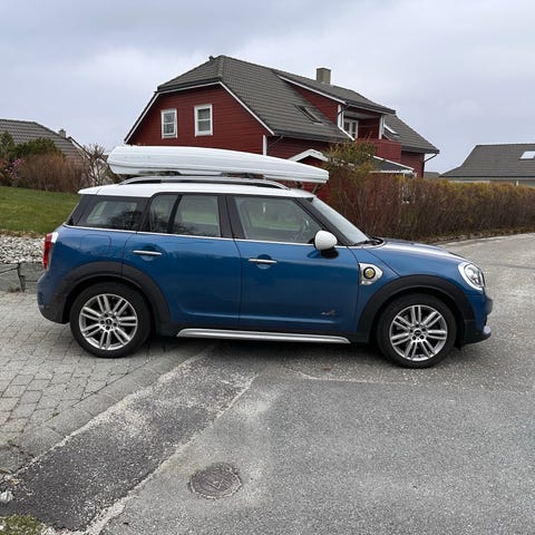 Pent og lite brukt takboks med en liten skade bak på høyre hjørne selges. Denne skaden er liten og ubetydelig da den ikke tar inn vann. MINI takboks 320 black med orginal Mini takbøyler. Last opp og kjør av gårde. Med en kapasitet på 320 liter har den svarte MINI Takboksen rikelig med oppbevaringsplass til alt du trenger på turen – f.eks. maks. fem par ski på opptil 180 cm eller strandutstyr. Den kan åpnes fra begge sider, og takket være et 6-veis låsesystem er det bare den virkelige eieren som kan låse den opp. Ny prisen er kr 8000,- for takboksen og kr 2800,- for takbøylene.