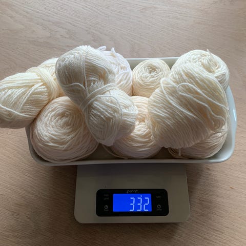 Uspesifisert garn i naturkvit farge, laga av bomullsmateriale.