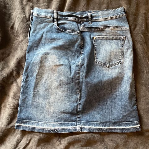 H&M Denimskjørt i blå farge, størrelse 44 Skjørtet er laget i denimmateriale og har lommer foran og bak.