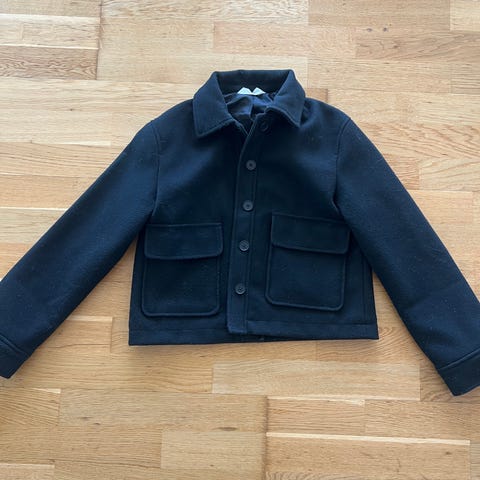 En kåpe som ble for liten i en fei. Jenten vår hadde planer om å bruke den på skolen med veske over skulderen. Hun vokste før hun kom så langt. Så ble den for liten og derfor er den ubrukt. 150-164