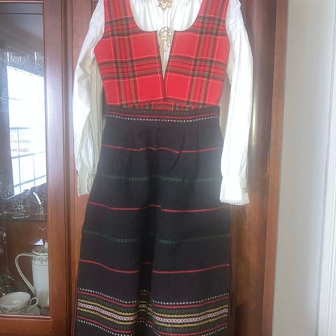 Selger en lite og pent brukt rutaliv og rondastakk med forkle. Bunaden er i str 38 eller medium.
