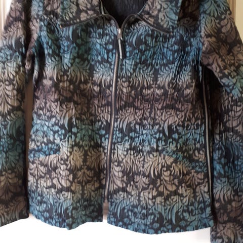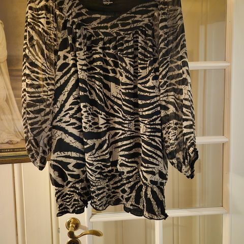 Fin foret topp med glidelås i siden. Mønster og pålimte steiner foran. 75% rayon, 25% polyamid. Lite og pent brukt.