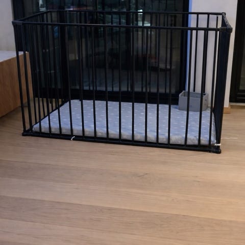 Hvit Baby Dan lekegrind 100x100 cm med hjul og bunnplate.