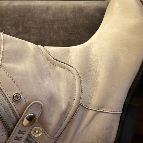Fine svært lite brukt støvletter i skinn selges kr 200. Dus grå farge . Ser nye ut . Svart såle