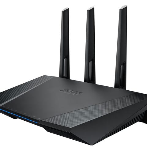 ASUS RT-AC68U Router med svart farge. En trådløs ruter med flere antenner for forbedret signalstyrke og rekkevidde. Utstyrt med flere LAN-porter for kablet tilkobling. Passer til hjemme- og kontornettverk for trådløs internettforbindelse. Pent brukt.