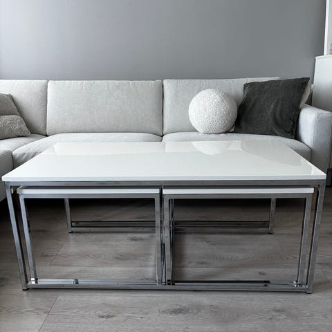 Hvitt sofabord til salgs. Kjøpt på Skeidar for ca 7 år siden. To små hakk i bordplaten. Lite synlig.