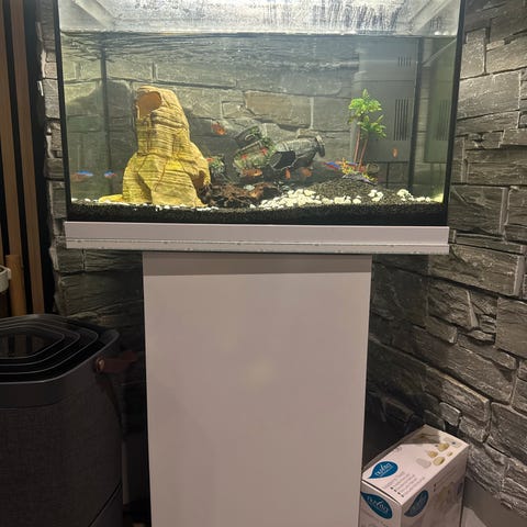 Standard akvarium med 60 liters kapasitet, svart ramme og lokk. Egnet for ferskvannsakvarier med plass til planter, steiner og fisk. Inkluderer belysning i lokket. Passer til hobbyakvarister som ønsker et mellomstort akvarium.