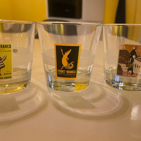 Glassene har logoer og merker for ulike whiskymerker, inkludert: