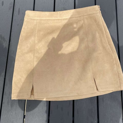 Nydelig blyantskjørt 100% genuine leather. Farget er mørkebrunn. Jeg selger det siden det passer ikke meg lenger (jeg bruker small str nå). Veldig bra stand. Fra merket: More&More. Ca 56 cm lang, 37 cm midjen