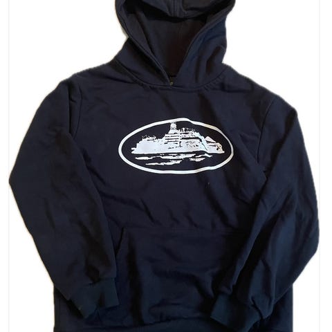 Marineblå hoodie fra Lyle & Scott selges.