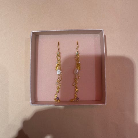 Maanesten gullbelagte øredobber med perle. Laget av gullbelagt sølv med ferskvannsperler . Passer til ulike anledninger og stiler.