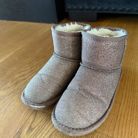 Varme og utrolig kuule glitter “uggs” - bittelitt slitasje foran på den ene (se bilde) - dette kan bare tusjes over. Reflekteres i prisen!
