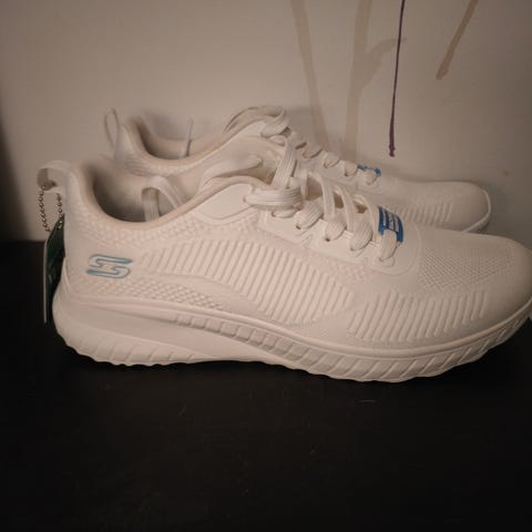 Skechers Sneakers joggesko i størrelse 36, hvit farge. Laget med pustende mesh materiale og utstyrt med Memory Foam innersåle for komfort. Egnet for daglig bruk og ulike aktiviteter. Kan sende med posten eller postnord.